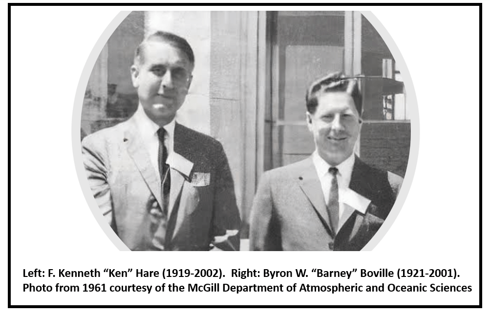 The initial papers on the polar night jet opened an era of enhanced interest in the dynamics of the polar stratosphere and Canadian scientists and institutions would take the lead. Notably McGill University’s researchers led by professors Ken Hare and Byron W. Boville would continue with observational studies of the circulation in the polar stratosphere. McGill’s biennial “Stanstead Seminar” series, founded by Hare in 1955, would become a leading venue for discussing developments in stratospheric research. The 1963 Seminar was titled “The Stratosphere and Mesosphere and Polar Meteorology” and attracted an international group of outstanding researchers. The 1965 Stanstead Seminar was titled “The Middle Atmosphere”. Hare’s introduction to the 1963 proceedings volume included his perspective on recent history: